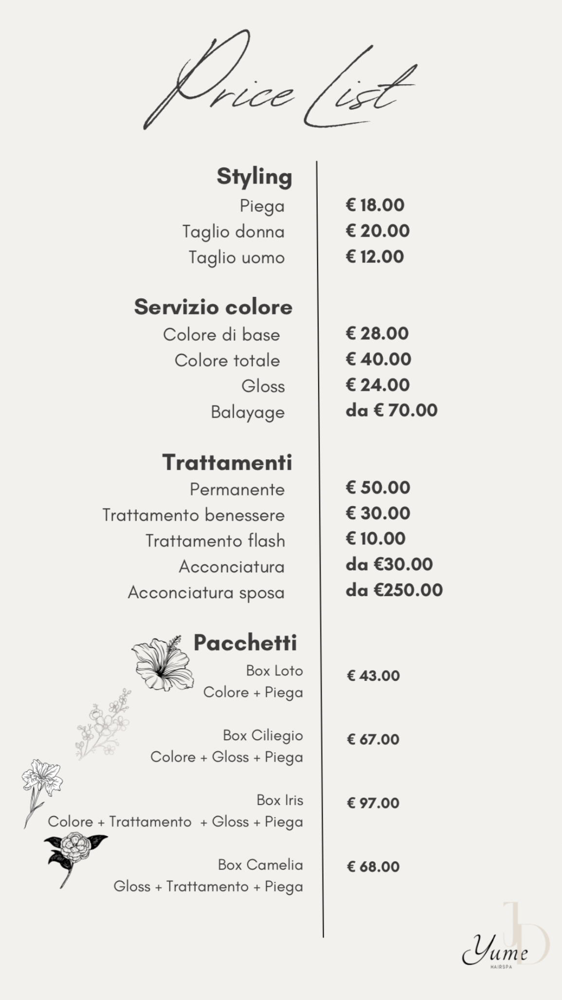 Yume JD non è solo un salone, è il tuo santuario personale di bellezza e benessere per il tuo capello. Immagina un luogo dove ogni dettaglio è pensato per il tuo comfort e la tua bellezza, dal design accogliente alle tecniche di cura avanzate per i tuoi capelli. Presso Yume JD , ogni trattamento è un’esperienza unica, progettata per trasformare il tuo look e rinvigorire il tuo spirito. Vivi l’esclusività di un hair spa dove la tua bellezza e il tuo benessere sono al centro di ogni attenzione.